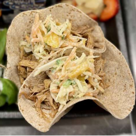 Smoked pulled chicken, shredded cheddar cheese, house made Alabama White BBQ sauce, pickled red onion, and fresh cilantro. This recipe takes a student favorite, nachos, and gives it a fun BBQ twist that is full of big flavor and great texture!