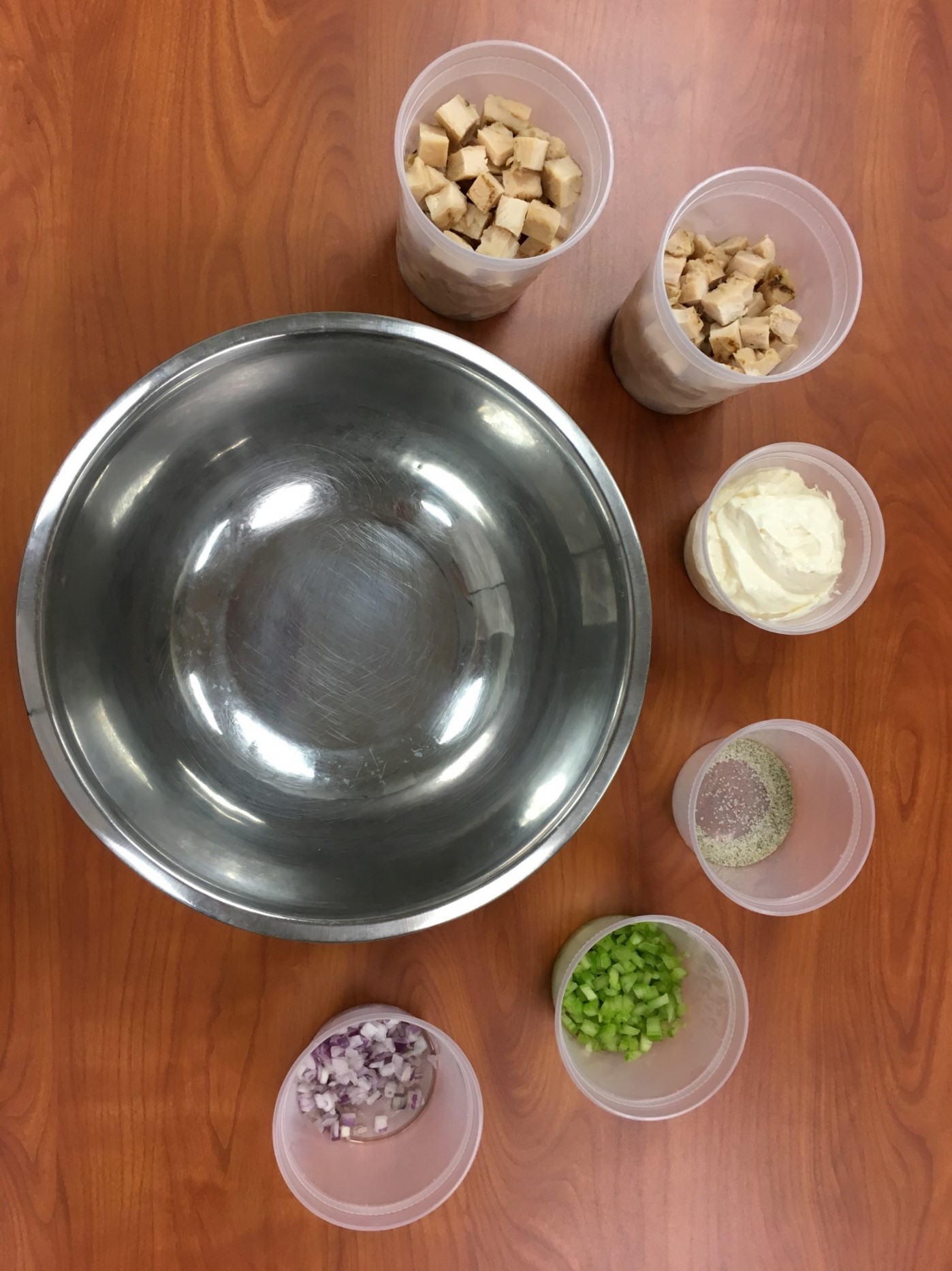 This recipe is a base chicken salad and should not be served as is. Complete with our Classic Chicken Salad, Fruity Chicken Salad, Buffalo Ranch Chicken Salad, or Pecan Peach Chicken Salad recipes.
