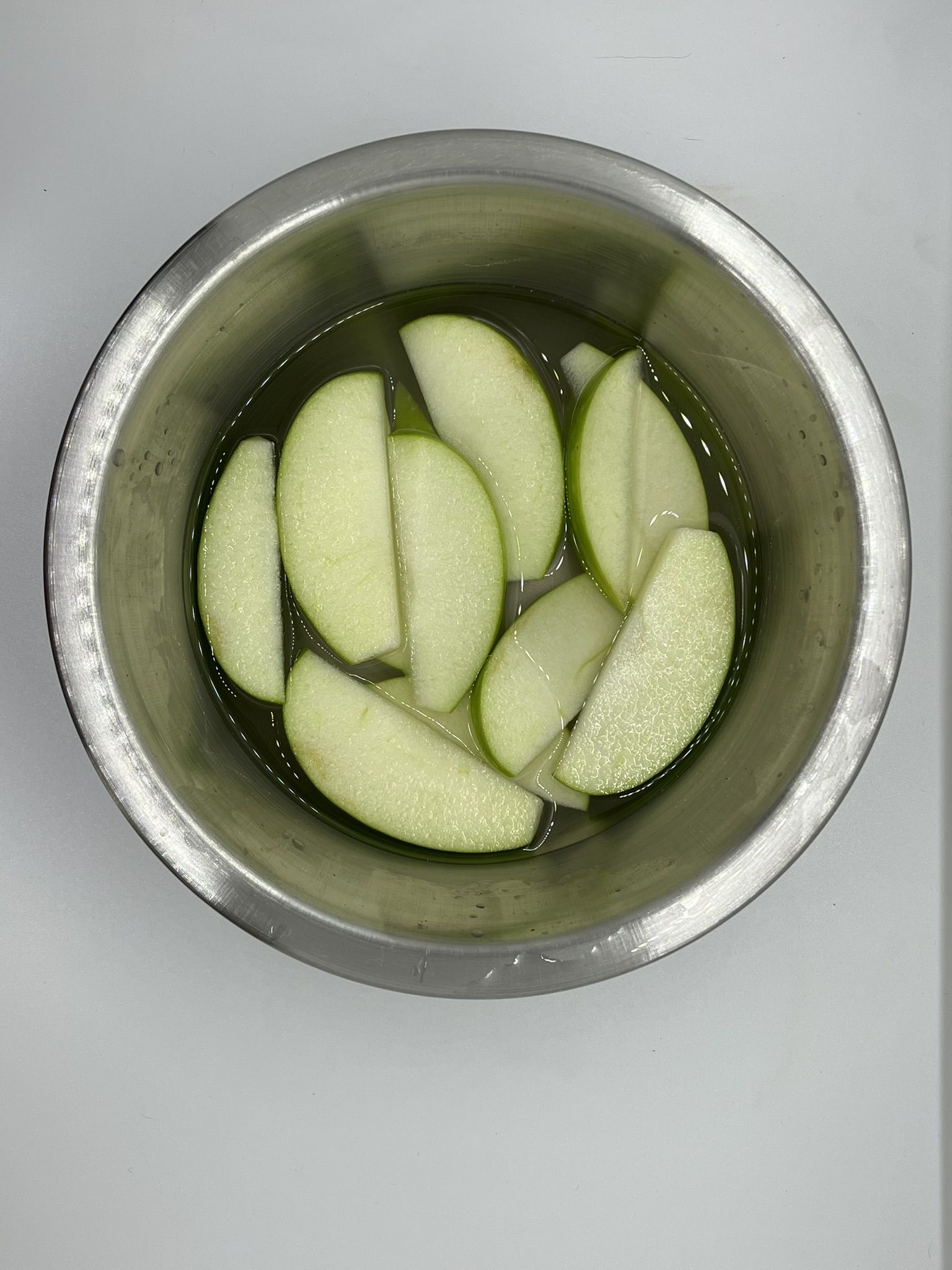 - Follow recipe for the Salt Water Bath. Ensure the quantity is enough to cover the apples needed.