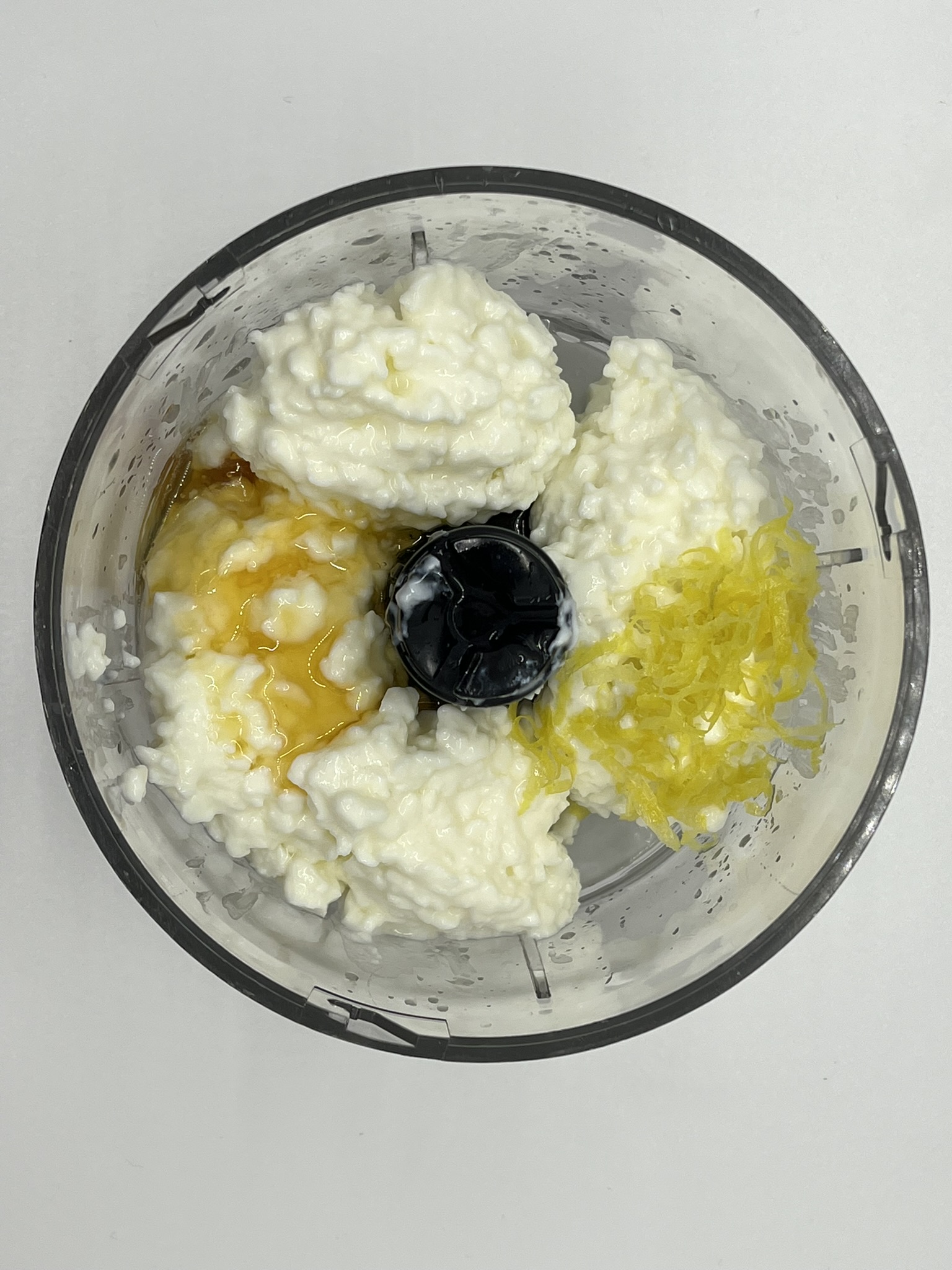 - In a food processor, combine the cottage cheese, lemon juice and honey.