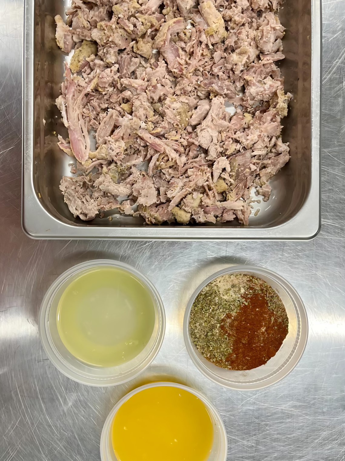- 4 lbs + 12 oz Pork, pulled