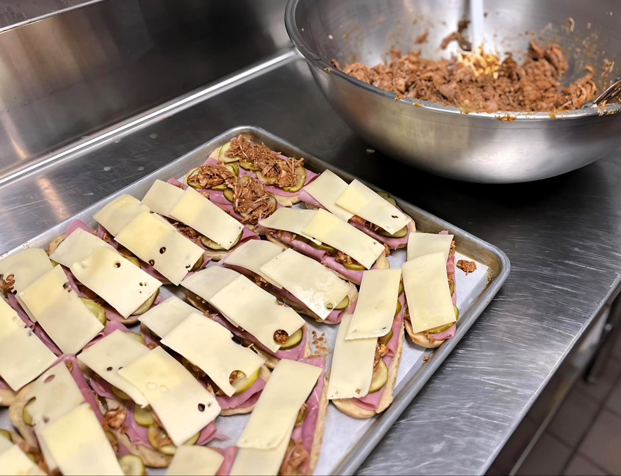 Cuban sandwiches, also known as Cubanos, are flavorful, pressed sandwiches filled with juicy pork, Swiss cheese, ham, pickles, and mustard spread. This delicious sandwich is a hit with students, selling out, when tested at schools in Jackson and Clinch County.