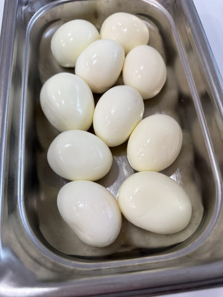 - 50 each Eggs, large, whole, hardboiled, peeled