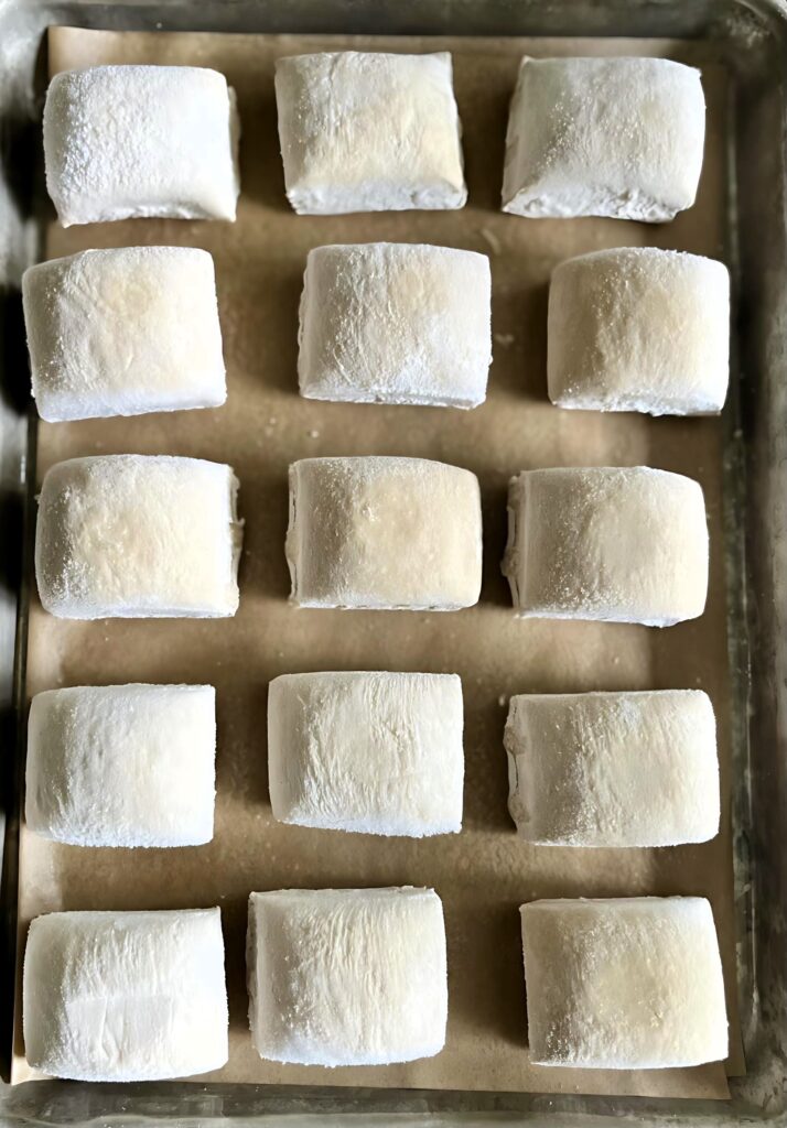 - Arrange 60 rolls per sheet pan.