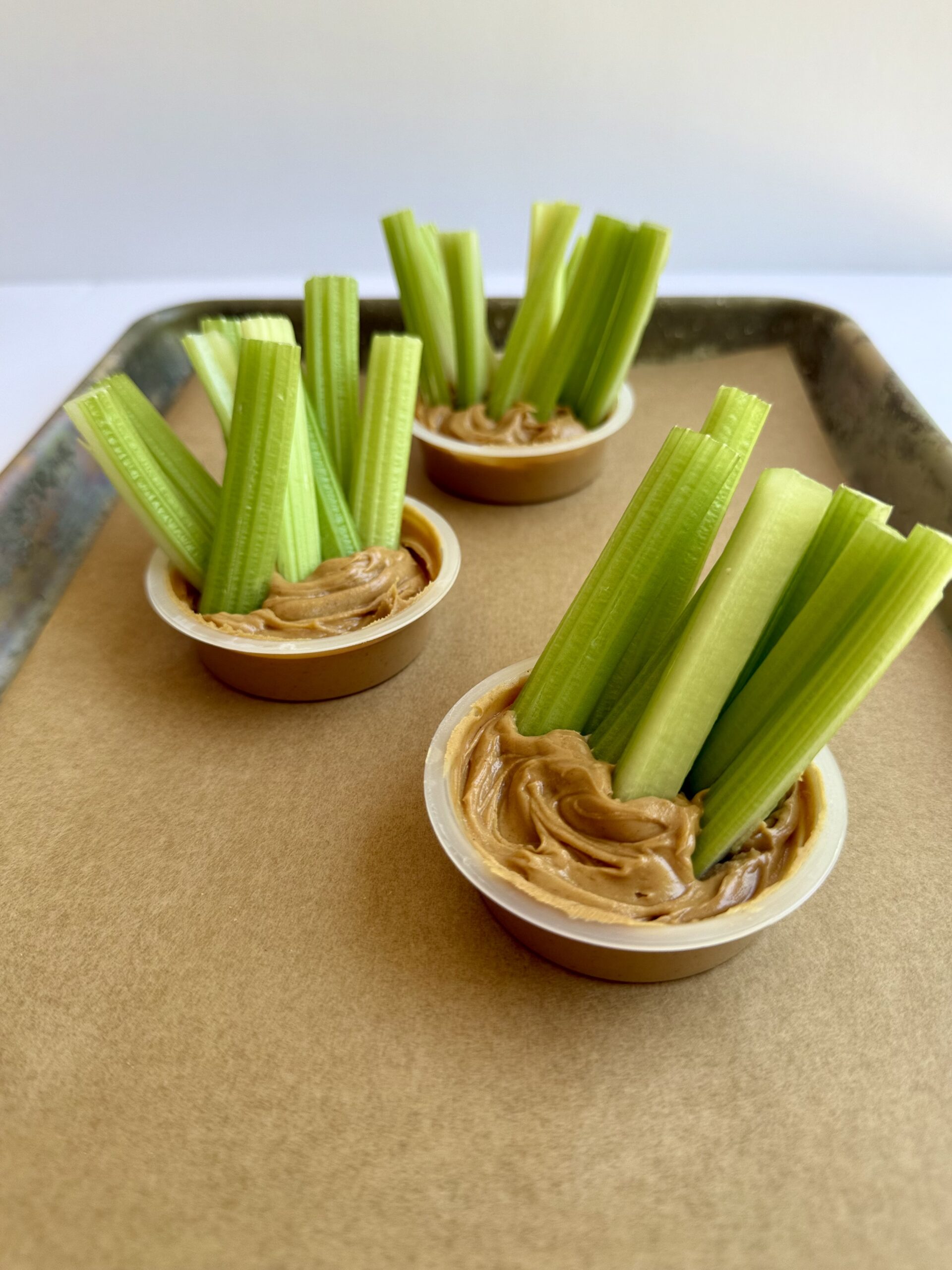 - Portion 3/4 cup celery sticks, about 9 sticks, into serving containers.