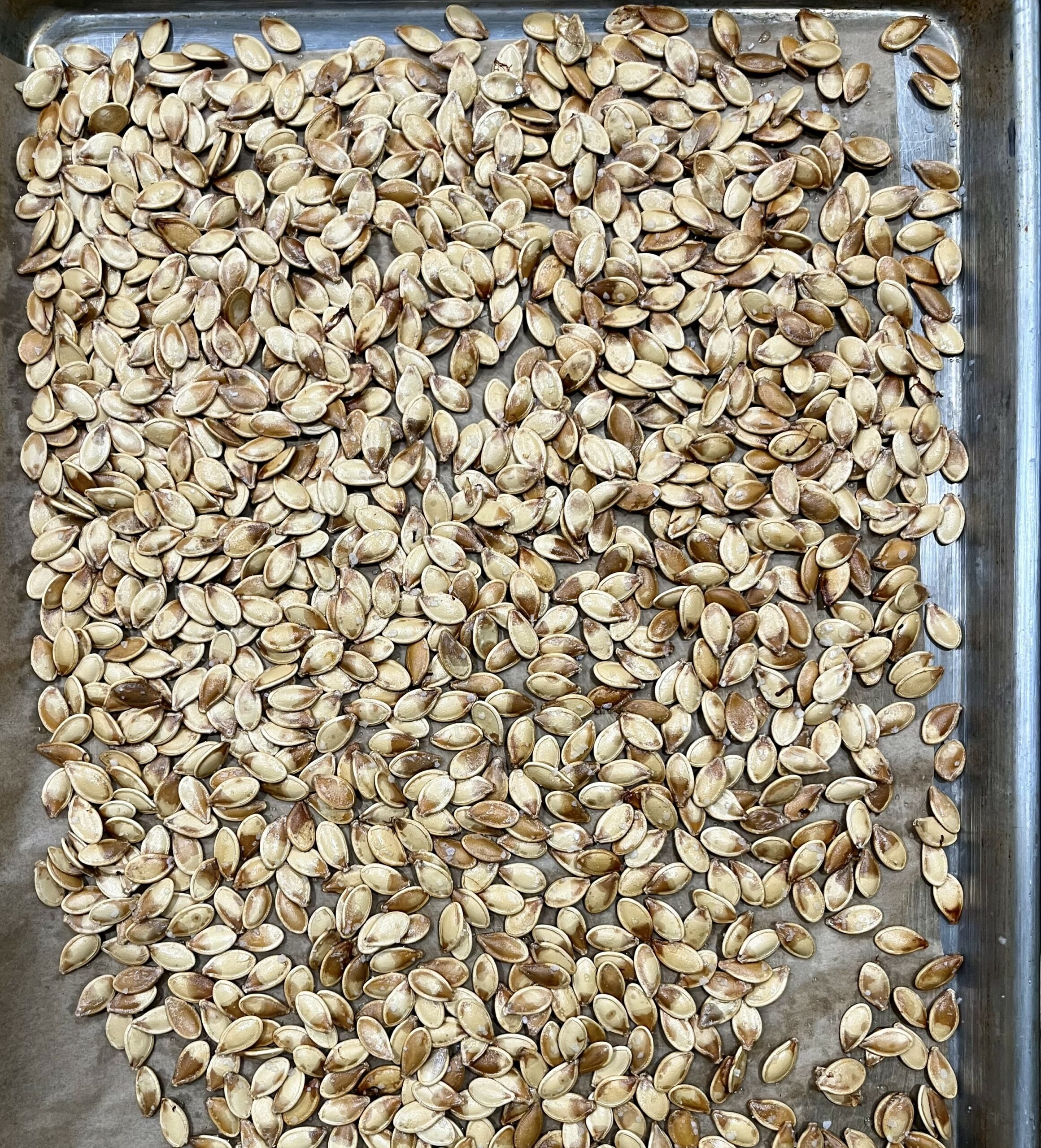 - The seeds will be golden and fragrant. Remove from the oven and let them cool completely before serving or storing.